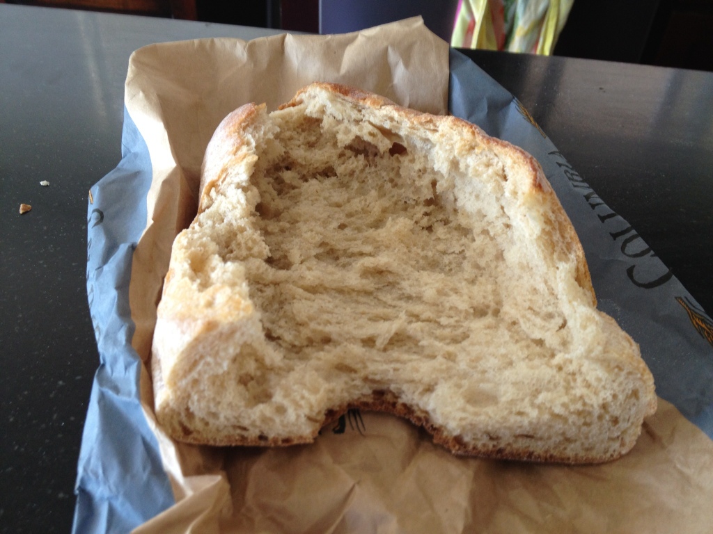 Aida pounced on this one-pound loaf of fresh bread when I forgot to lock it up before going upstairs to brush my teeth this morning.