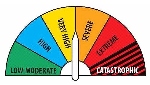 So today I’m introducing the Maternal Core Meltdown danger index, pictured above. Like the forest fire danger index that inspires it, the MaCMe (let’s pronounce it “make me”, shall we?) danger index indicates the degree of risk that a small spark – in the form of, say, a simple question such as “are we out of Aida’s cucumber for snacks?” – will set off a conflagration that consumes everyone (and all chocolate) within reach and leaves nothing but scorched earth and acrid smoke behind.